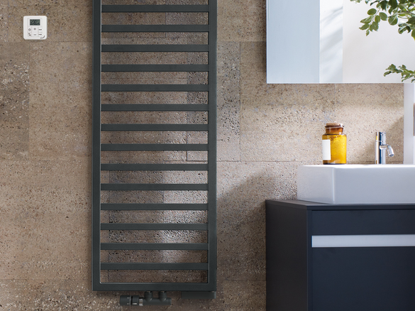 Le radiateur de salle de bains Zehnder Quaro respire l'unité pure. Son design élégant est le fruit de la combinaison d'un cadre carré et de tubes carrés. Une différence avec le Zehnder Subway, qui associe un cadre carré à un tube rond. De plus, dans les versions électrique et mixte, le récepteur électrique est discrètement dissimulé, ce qui permet de conserver un design cohérent.