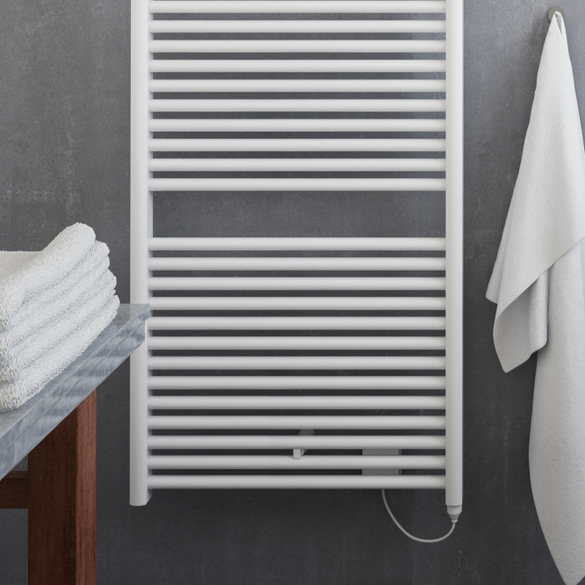 Parfois, un élément simple est justement très intelligent. L'élément chauffant IHE (sans commande intégrée) a été spécialement développé pour être intégré dans les systèmes domotiques. L'élément marche/arrêt peut par exemple très bien être utilisé en combinaison avec une prise commutable, comme dans les salles de bains d'hôtels ou dans les habitations équipées d'un système domotique.