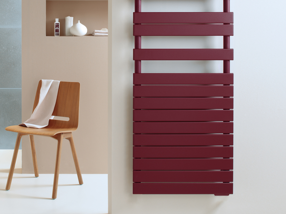 Le design moderne se marie parfaitement avec la chaleur et le confort du Zehnder Roda Spa. Les tubes horizontaux plats sont montés sur les collecteurs ronds, ce qui confère au radiateur un caractère contemporain et permet de suspendre facilement les serviettes. L'aspect du Roda Spa s'adapte ainsi à tous les styles de salle de bains et peut être affiné avec l'une des couleurs de la gamme Zehnder World of Colours.