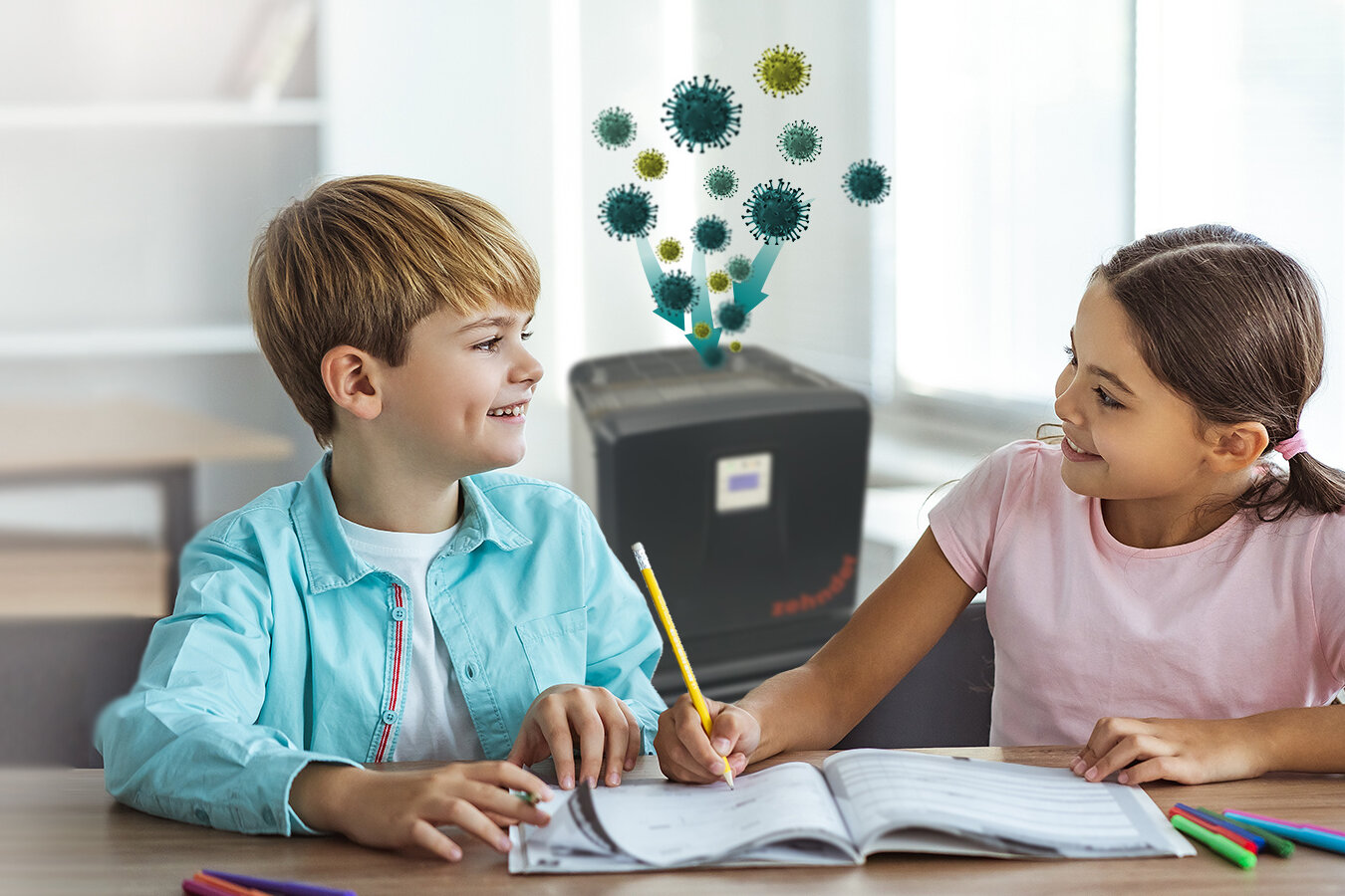 Ouvrir une fenêtre (aérer) ne suffit souvent pas à maintenir un air sain dans la salle de classe. De plus, l’aération avec de l'air froid extérieur en hiver nécessitera plus d'énergie pour chauffer la salle de classe.