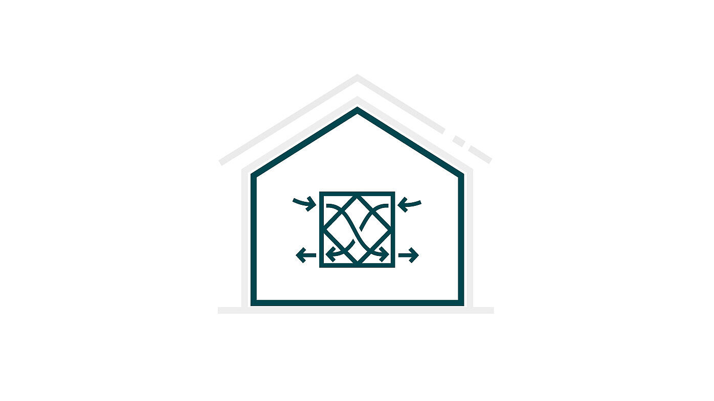 Eén unit vertileert de gehele woning. Met een luchtverdeelsysteem wordt de lucht op de juiste plek toe- en afgevoerd. De warmte of koude die al in huis aanwezig is, wordt hergebruikt. Hiermee wordt een aangename binnentemperatuur behouden en energie bespaard.