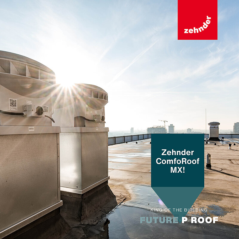 Ontelbaar veel woningen, scholen en (kleine) bedrijven worden mechanisch geventileerd met een Zehnder dakventilator. Kijk maar eens omhoog, de kans is groot dat je een Zehnder VDX of MX op het dak ziet staan. Zoals deze generaties dakventilatoren telkens hun tijd ver vooruit bleken te zijn, is ook de nieuwe ComfoRoof MX nu al klaar voor de eisen van de toekomst. Voor op-en-top dakventilatie.