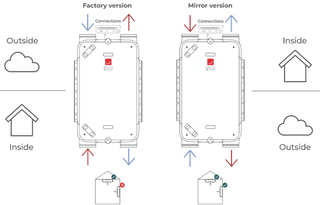 De Zehnder EVO kan tijdens de installatie heel eenvoudig op verschillende manieren worden geconfigureerd.