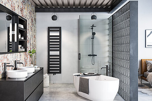 Helder, analytisch, puristisch. De kernkleuren uit het coole kleurenpalet zijn modern, tijdloos en robuust. Ideaal voor gebruik in ruimtes met een industriële cement of beton betonlook, maar ook op een witte muur zijn radiatoren in bijvoorbeeld matzwart en antraciet grijs een prachtige verschijning.